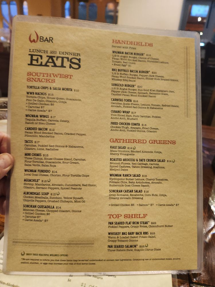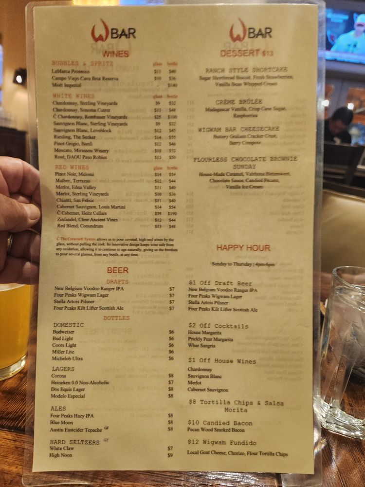 Introducing The Wigwam Bar: A hidden gem in Litchfield Park, Arizona, offering a unique dining experience within a historic resort. The outdoor seating and fire pits create a festive ambiance, perfect for a casual, intimate, or upscale evening out. The menu boasts a variety of options from pub-grub to steaks, ensuring something for every mood. Customers rave about the friendly staff and excellent service, with top ratings for the food options. Highlights include the peach cobbler stealing the show, delicious turkey wraps, homemade fries, and buffalo chicken wings. The beautiful setting, attentive wait staff, and reasonable prices make The Wigwam Bar a must-visit destination for locals and visitors alike. Enjoy a relaxing and delightful dining experience either indoors or outdoors at this charming cocktail bar.